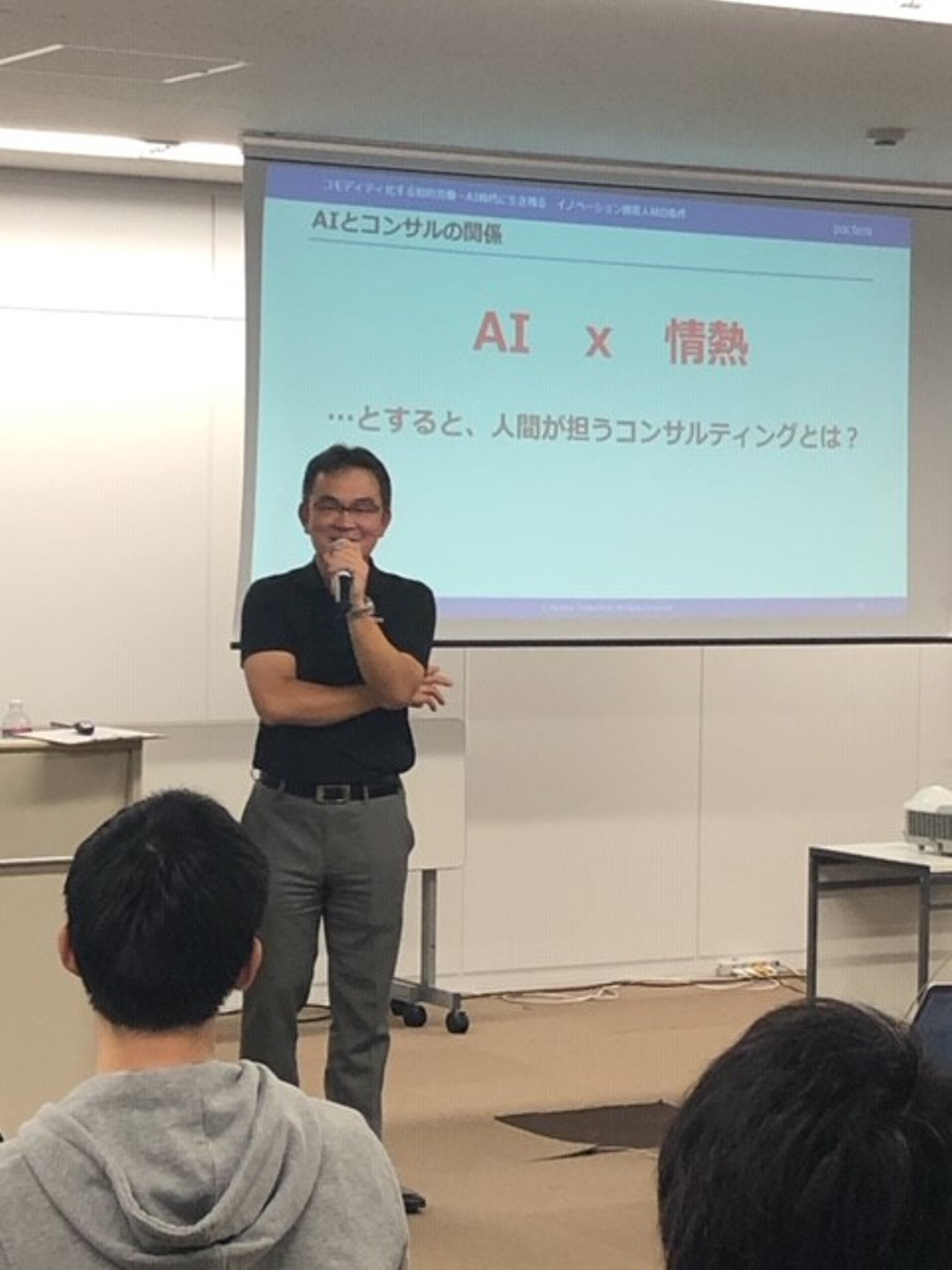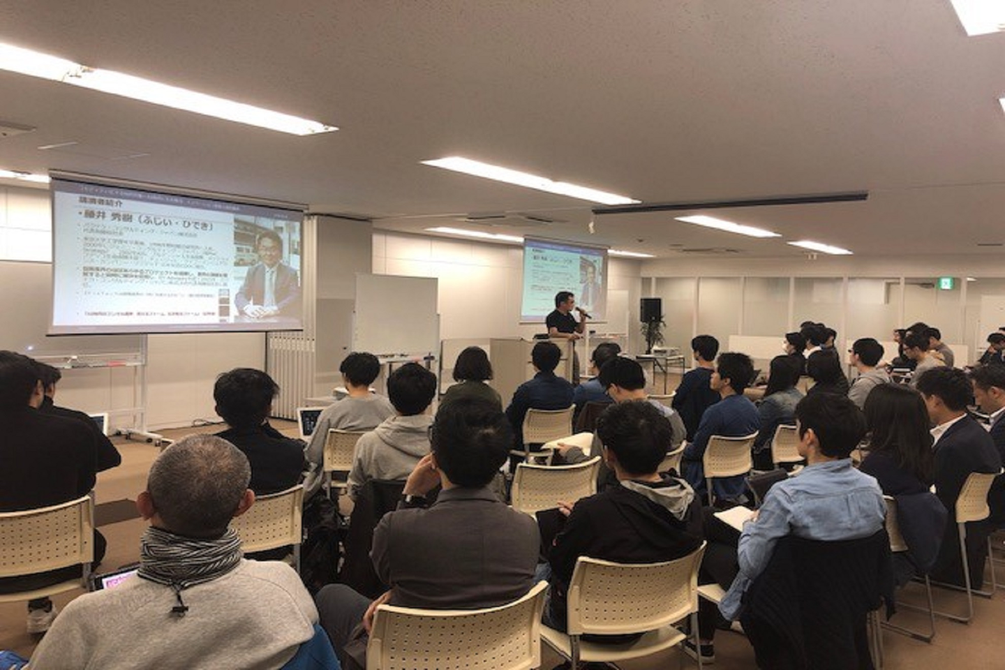 11月23日(金)に「コモディティ化する知的労働-AI時代に生き残る イノベーション創造人材の条件」と題し代表の藤井が講演を行いました。簡単ですが、当日の模様を紹介したいと思います。