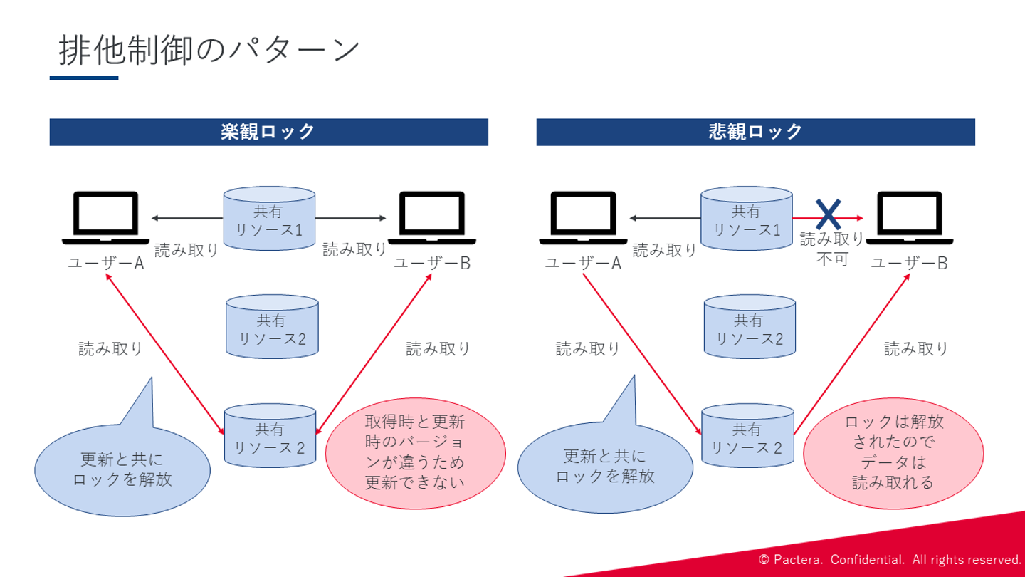 最後に、開発現場で用いる排他制御のパターンを確認しましょう。