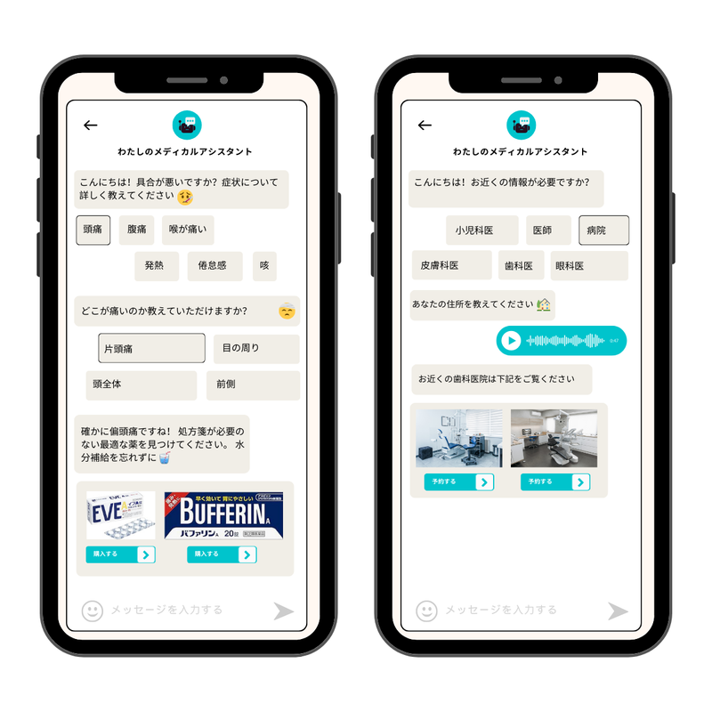 患者の症状や悩みを入力すると、可能な疾患や次に取るべき行動に関する情報を提供する対話型のアドバイザー。
