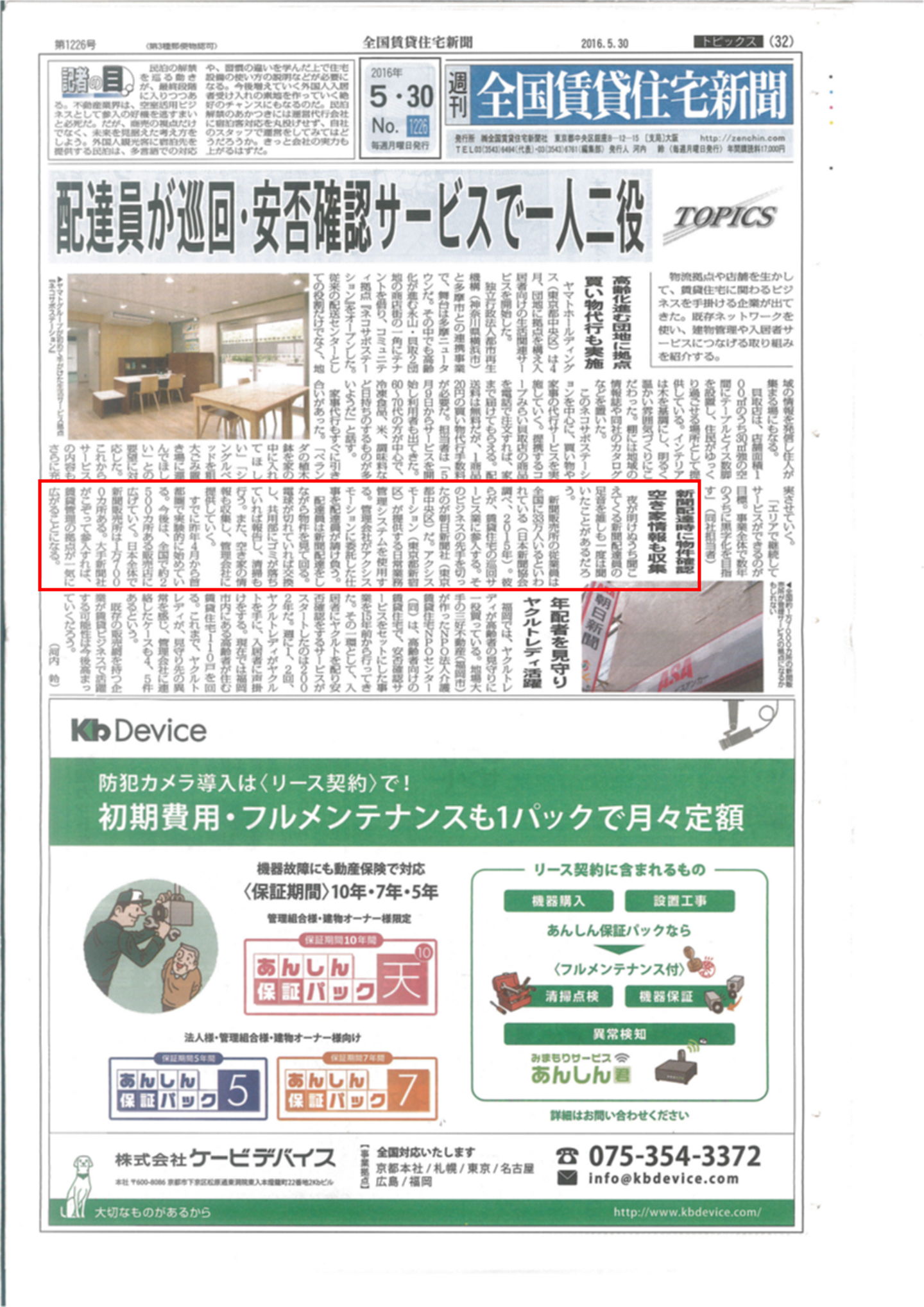 こうして全国賃貸住宅新聞に掲載していただき嬉しい限りです!!