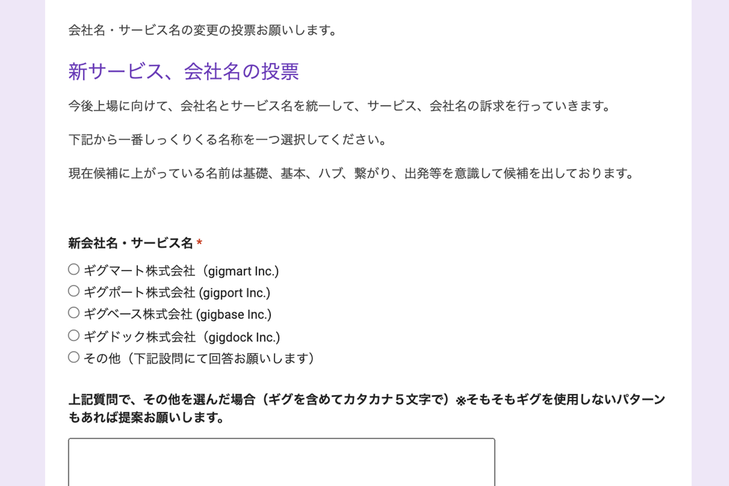 みんなで吟味して、みんなで決めたサービス名を会社名にしたい!