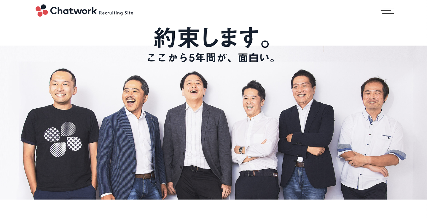 そして採用情報も、コーポレートサイトの中に募集要項一覧を掲載していた程度で、実は採用サイトというものがなかったんです。なので、Chatworkの社員がどんな想いを持って働いているのか、どういう人が働いているのか、外から見たときにわかりにくかったんです。