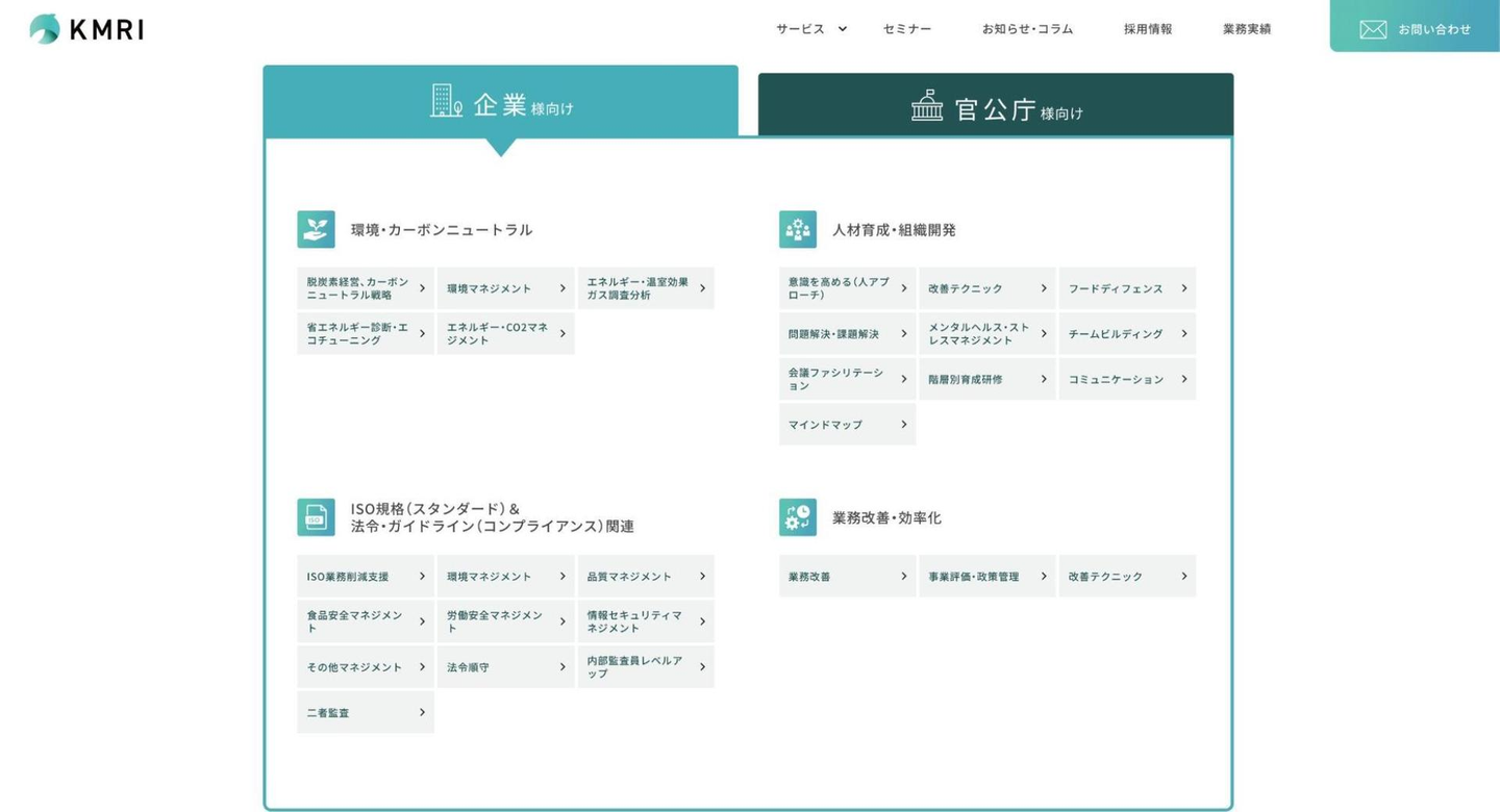 ▲出典:知識経営研究所 TOPページ 対象別サービス一覧
