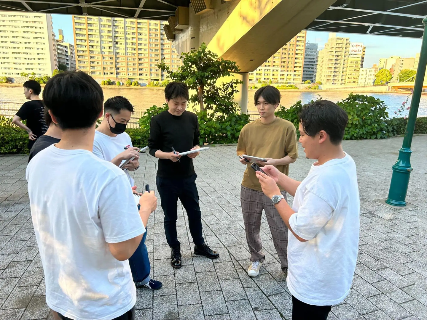 少人数のグループに分かれ、改めてご神託の解釈をめぐり議論再開です。隅田川のほとりで語り合うことにより、川のマイナスイオン効果でだんだん落ち着きを取り戻してきました。