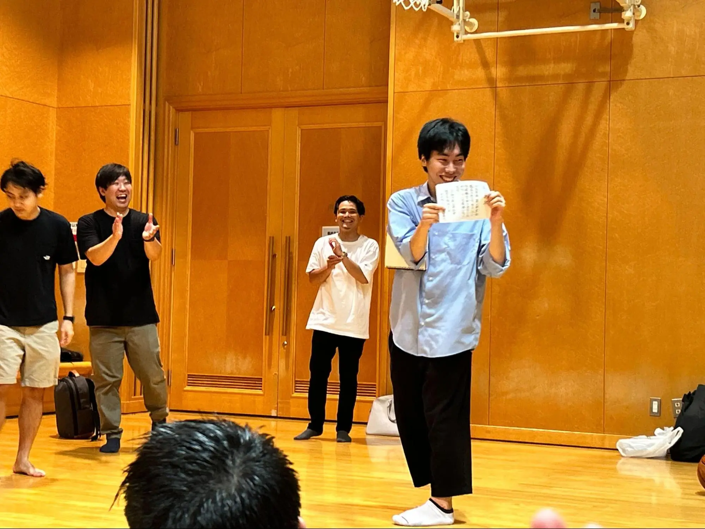 GIGの圧倒的成長を告げる文に、メンバーはみんな笑顔。スタンディングオベーションで拍手喝采です。