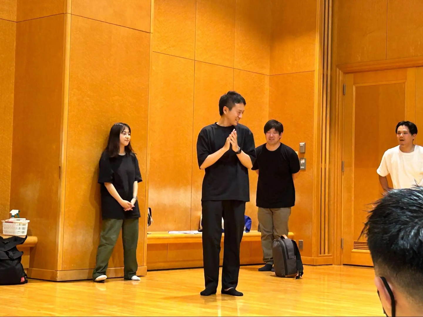 GIG代表の岩上さんが、柏手(かしわで)を打っている写真です。柏手とは、神前での礼拝の際に手のひらを打ち合わせて音を立てる動作であり、儀礼的で神聖なものとされています。