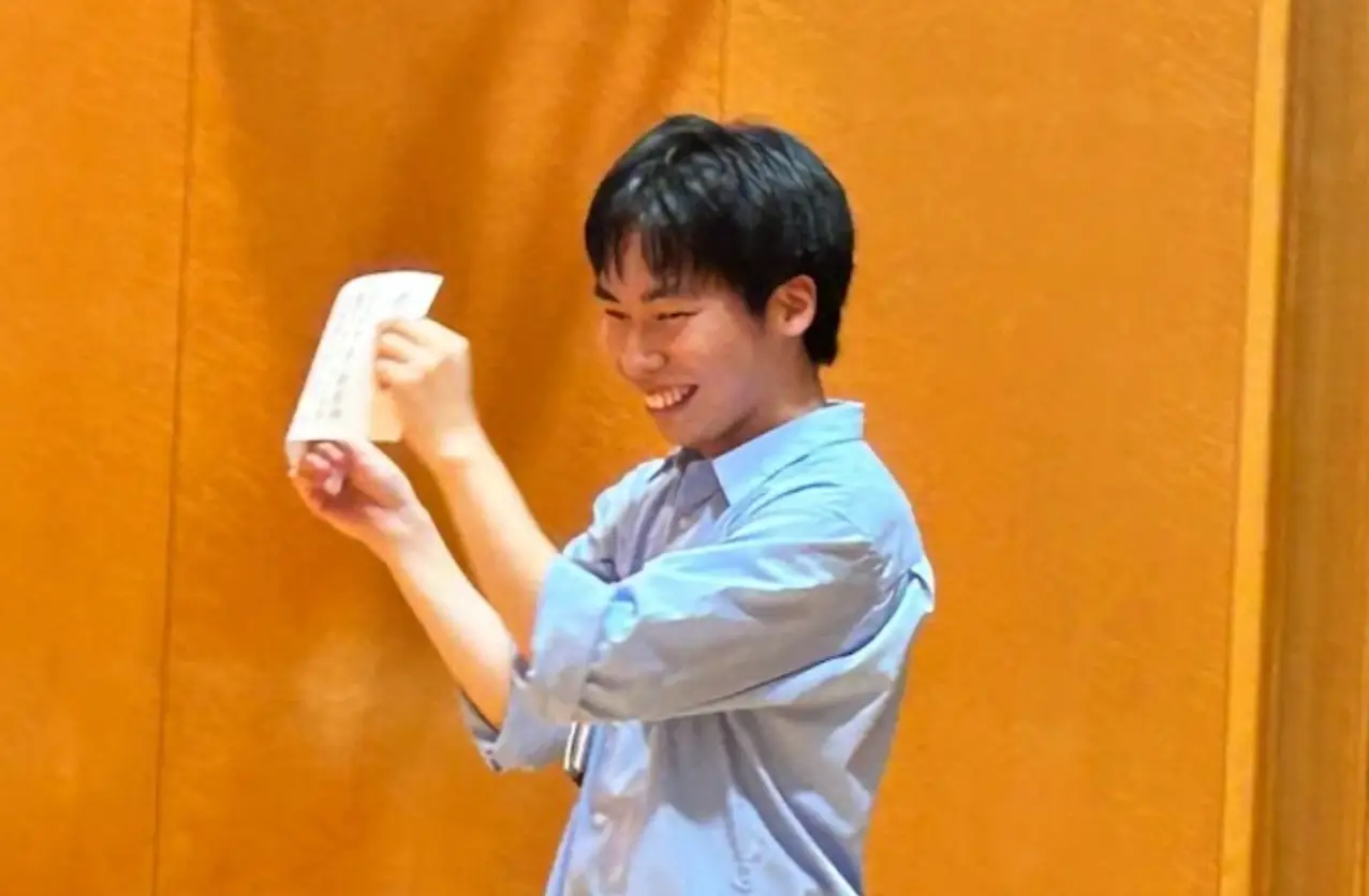 ここでLeadGrid事業部の福田さんがご神託を回収。写真のブレからも伝わるように、非常に素早い動きで回収したようですね。絶対に自分が受け取る、圧倒的成長してやるという強い意志を感じます。