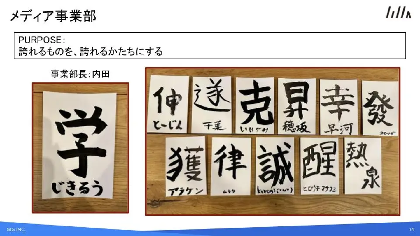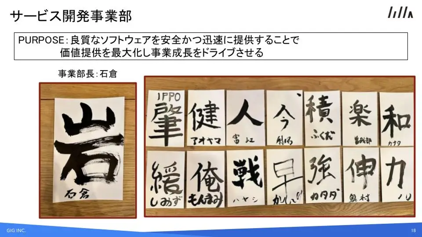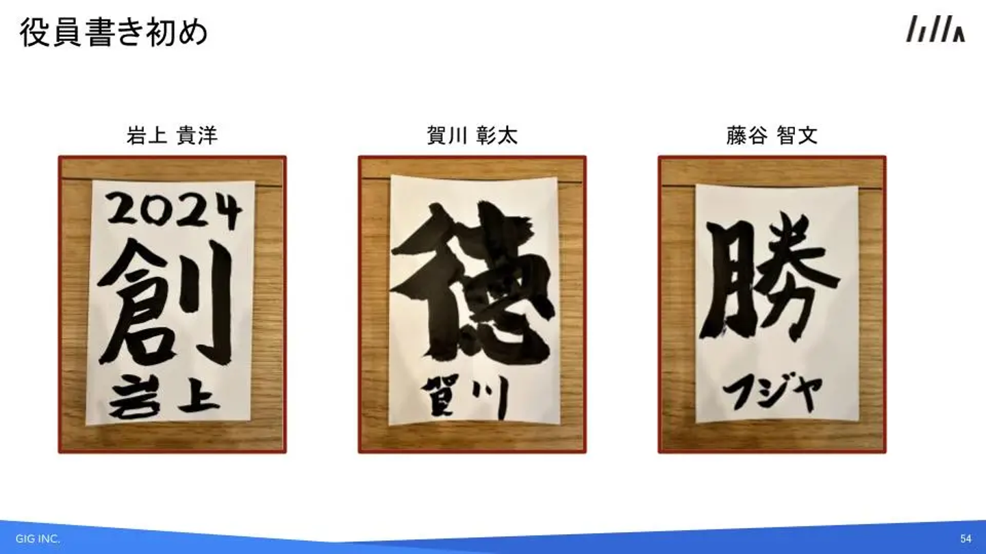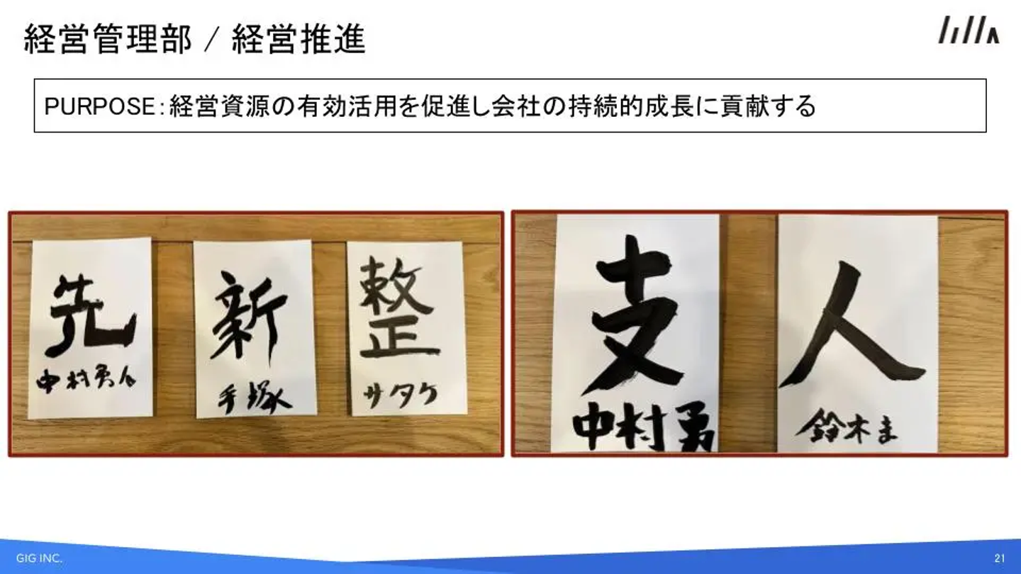 人事・経理・労務・法務を担当する経営管理部/経営推進室。GIGを支えるメンバーの書き初めを紹介します!