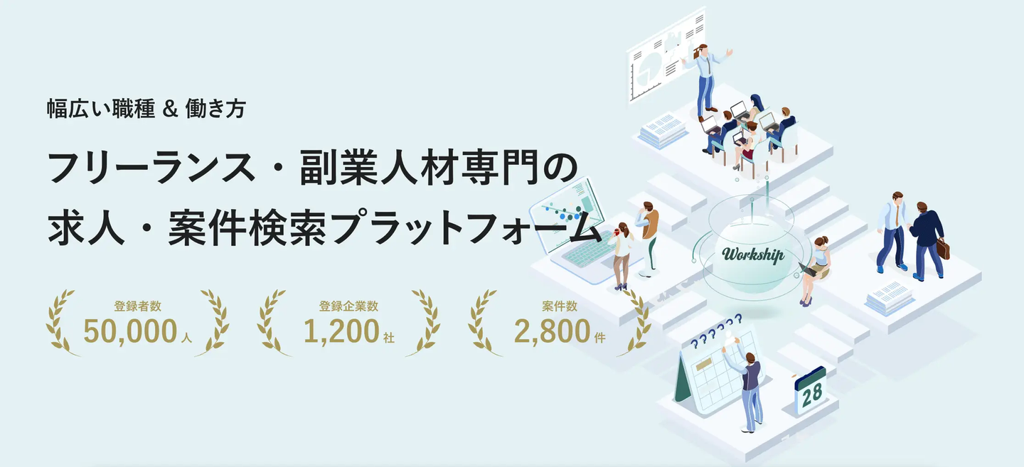 Workshipは、IT分野を中心としたフリーランスや副業人材を、プロジェクト単位のお仕事とつなぐ求人・案件検索プラットフォームです。2018年11月にサービスを提供開始し、2024年2月に登録者数50,000人を突破。プロフェッショナルな人材と企業をつなぐ一大プラットフォームへと成長を遂げました。