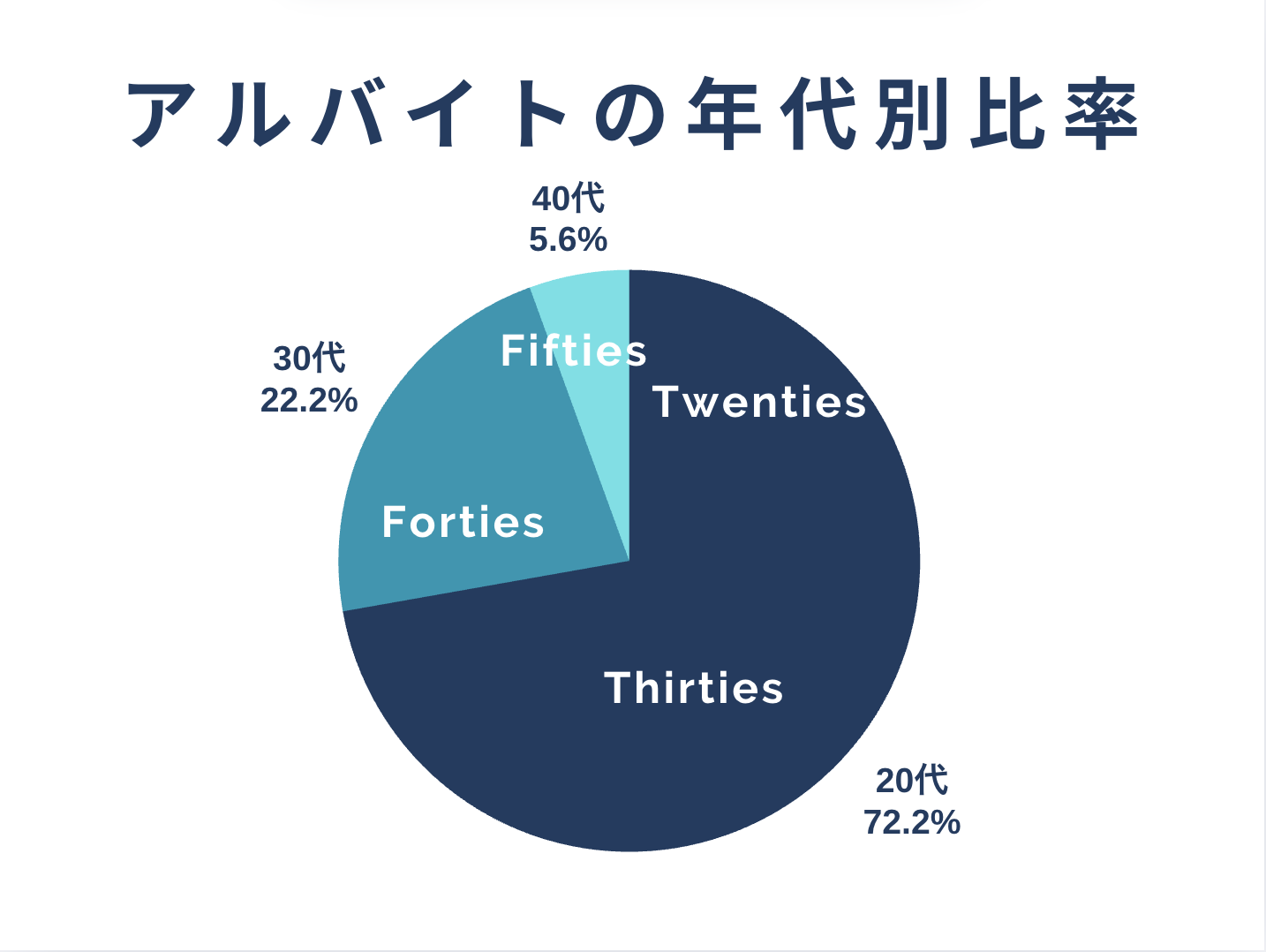 学生さんを中心とした、アルバイトの年代別比率ですが、以下の通りでした。