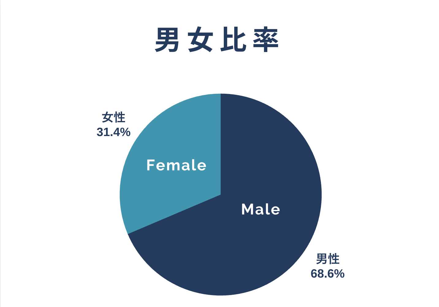 男女比は、昨年実績が【男性71%:女性29%】だったので、今年は女性の比率が2ポイントアップという結果になりました。