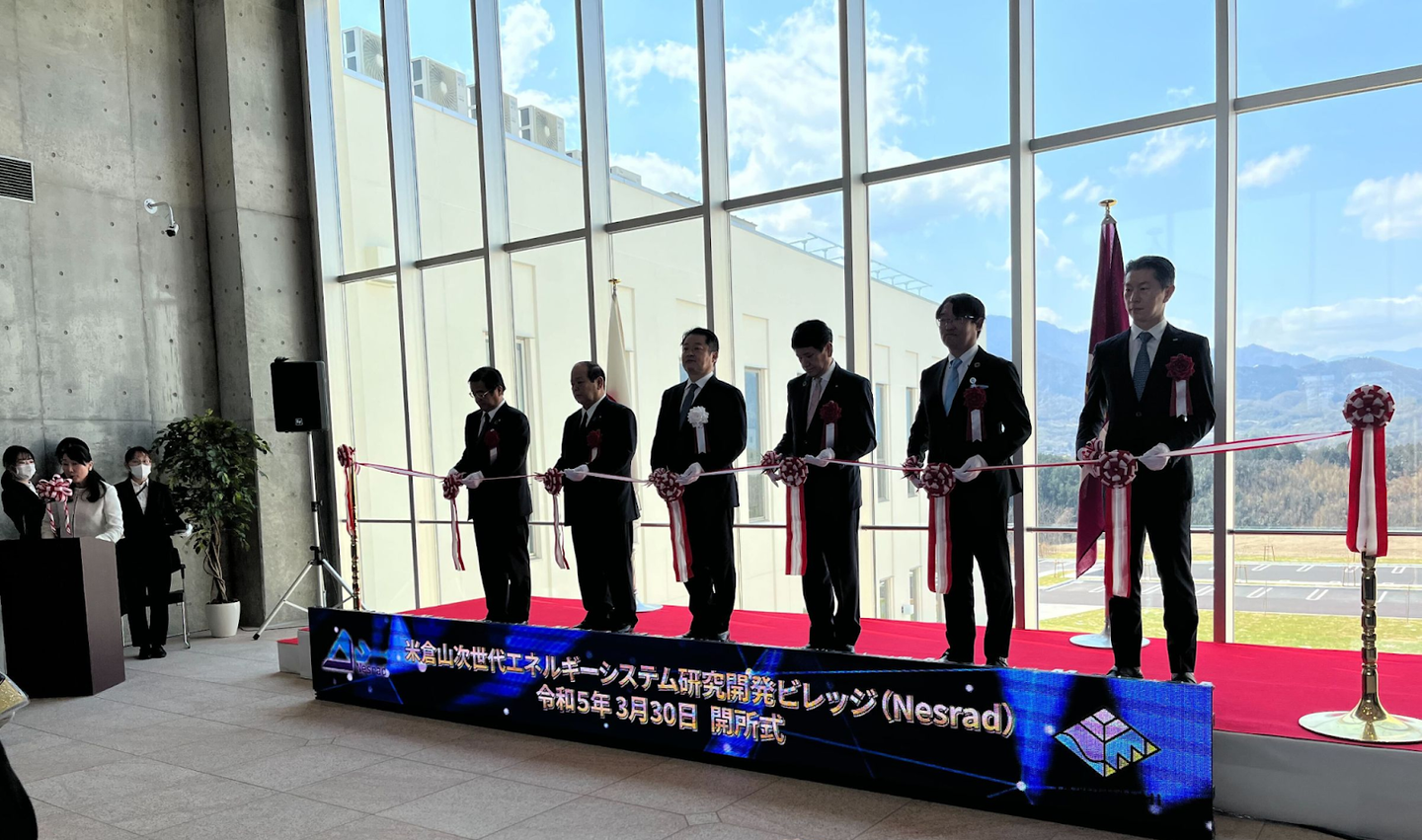 Nesradの開所式では、山梨県の長崎幸太郎知事をはじめとするご来賓の方々から、この研究開発拠点が地域経済やカーボンニュートラルに与える期待や、今後の発展に向けた応援のメッセージをいただきました。その後、ご来賓の方々によるテープカットが行われました。