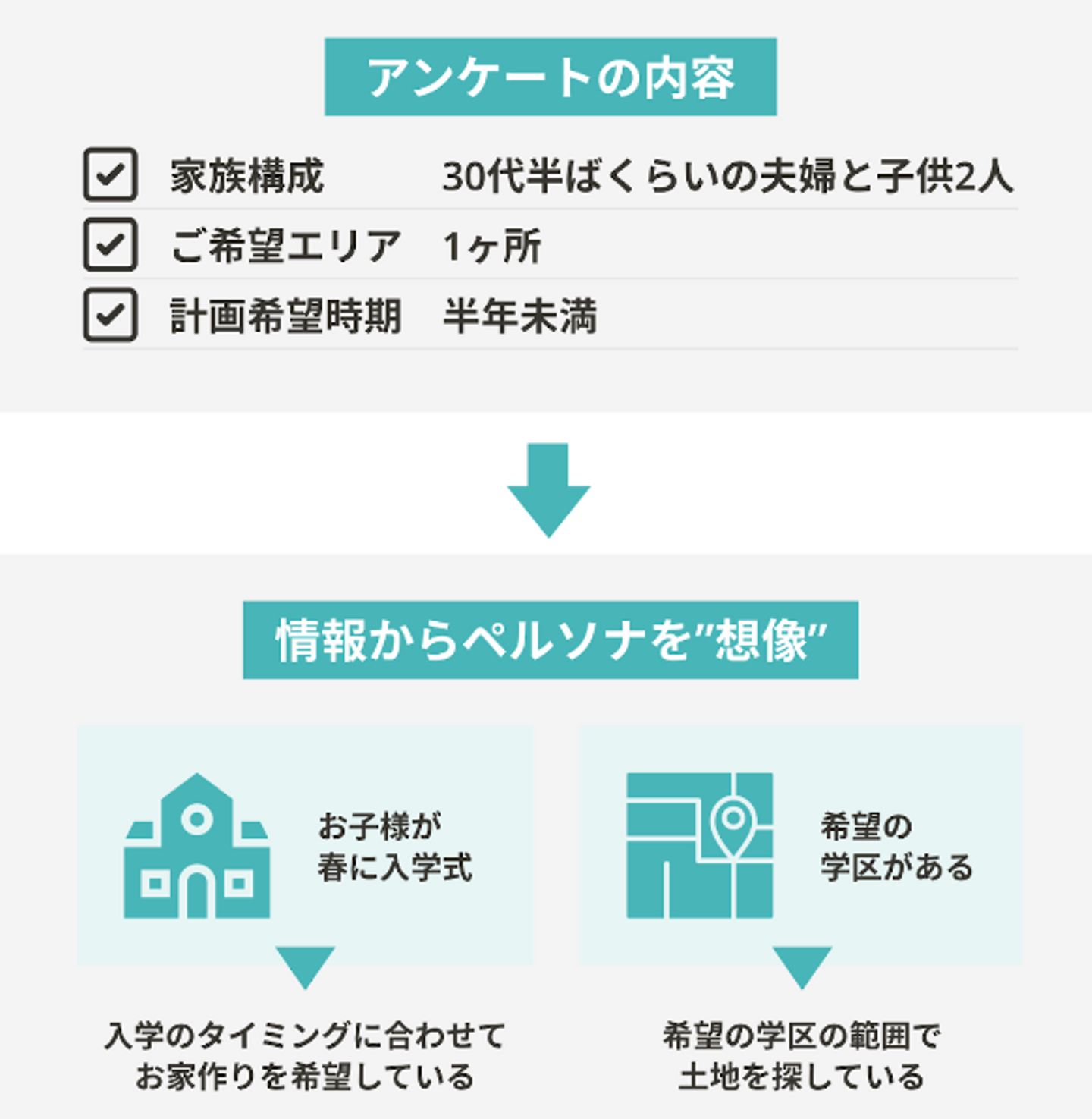 <お客様の事前情報>・30代半ばくらいの夫婦で、お子様が2人・ご希望エリアは1ヶ所のみ・お家作りの計画希望時期が半年未満
