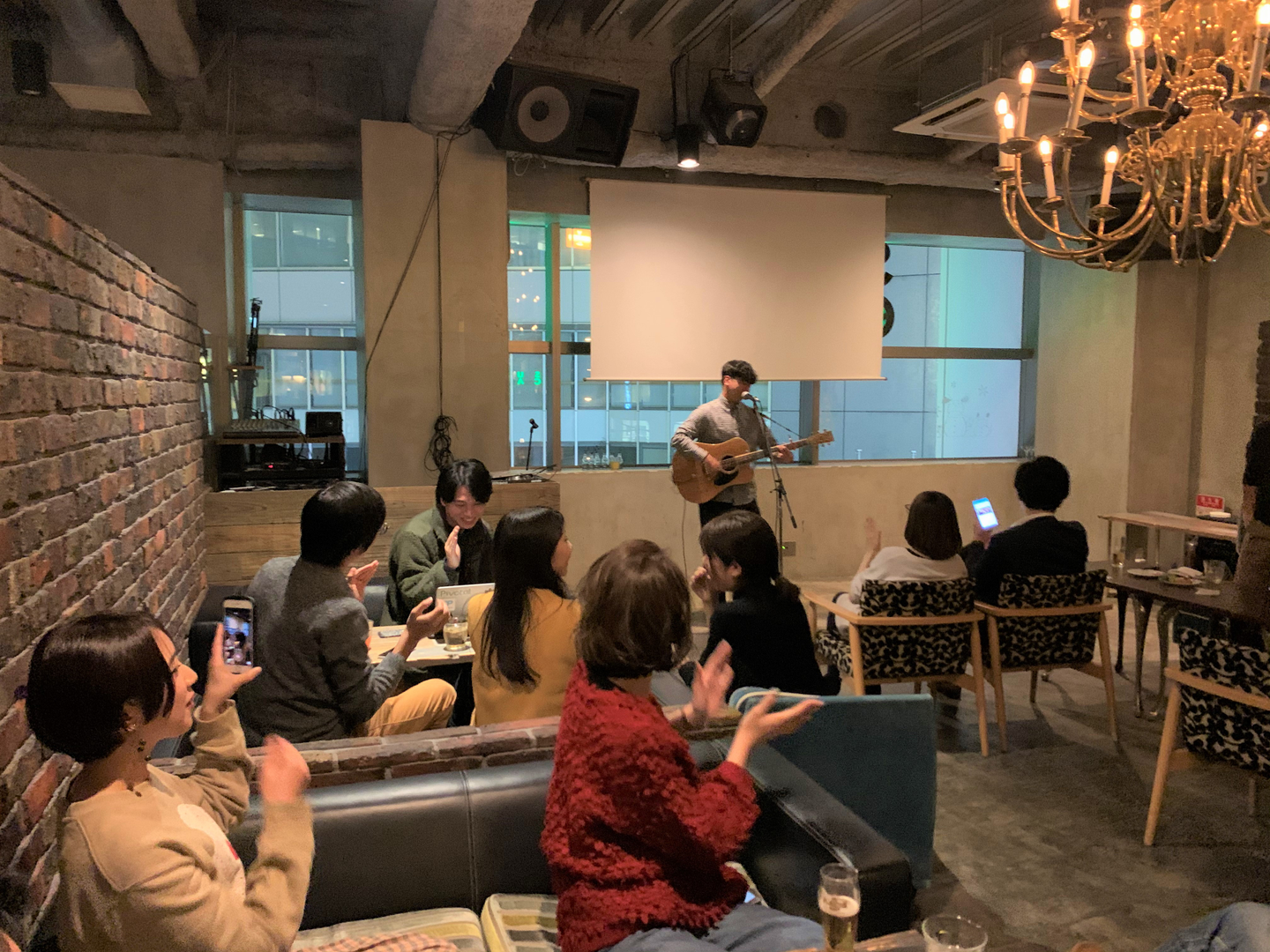 今回のDrinkingは年始ということもあり、DJブースがあったり、即席ライブを新卒内定者が行ったり(本人の挙手)と色々な企画で盛り上がりました。
