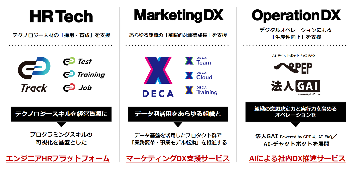 ギブリーでは「HR」「レベニュー」「コスト」の3領域で、“デジタル化促進”に寄与する事業を展開しています