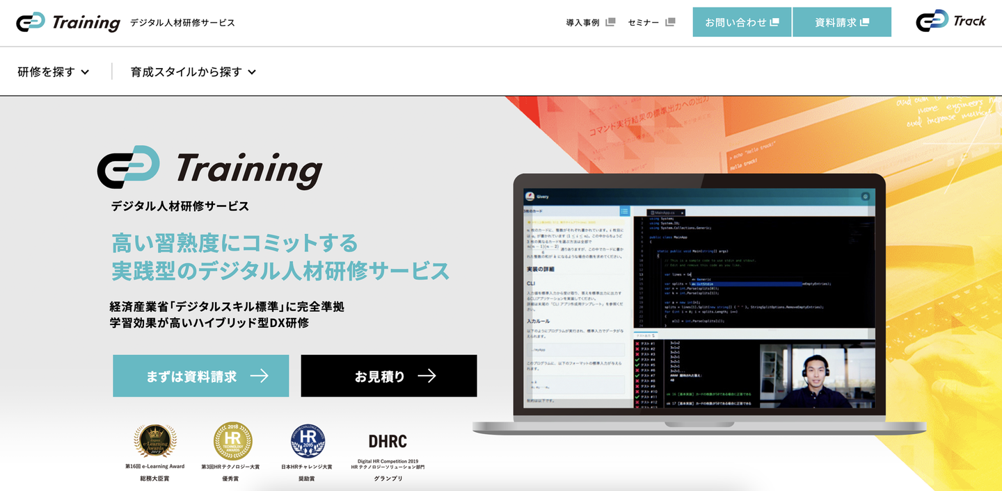 そしてそれだけではなく、それを活用した形でエンジニア・DX人材向け研修サービスもで展開しておりまして、こちらが私のメイン担当領域です。