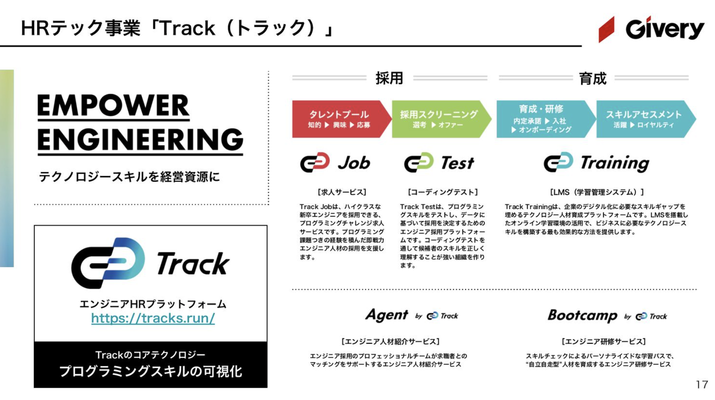 普通、研修提供だけで完結するのが一般的な研修会社だと思うんですけど、我々はSaaSベンダーなんで、Track Trainingが主軸なんですね。