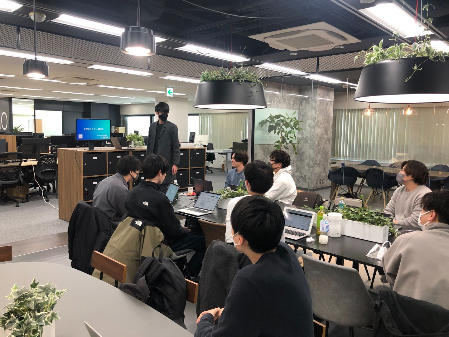 第8回のAWSセミナーは、折り返しの復習会。今まではオンラインで開催してきたセミナーですが、今回は引っ越したばかりのオフィスに集まって顔を合わせての開催となりました。(オフィス引っ越しの記事もぜひご覧ください!)