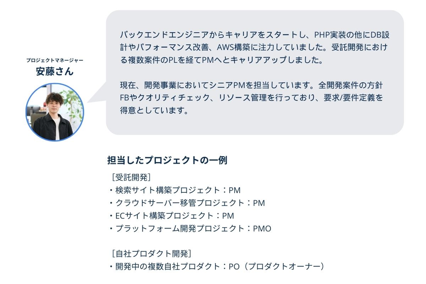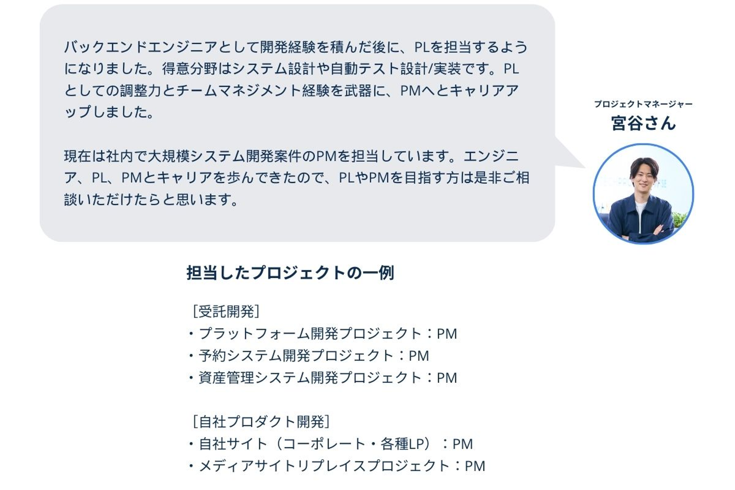 また、社内の開発部にてPMやPLを担当しているメンバーもいます。