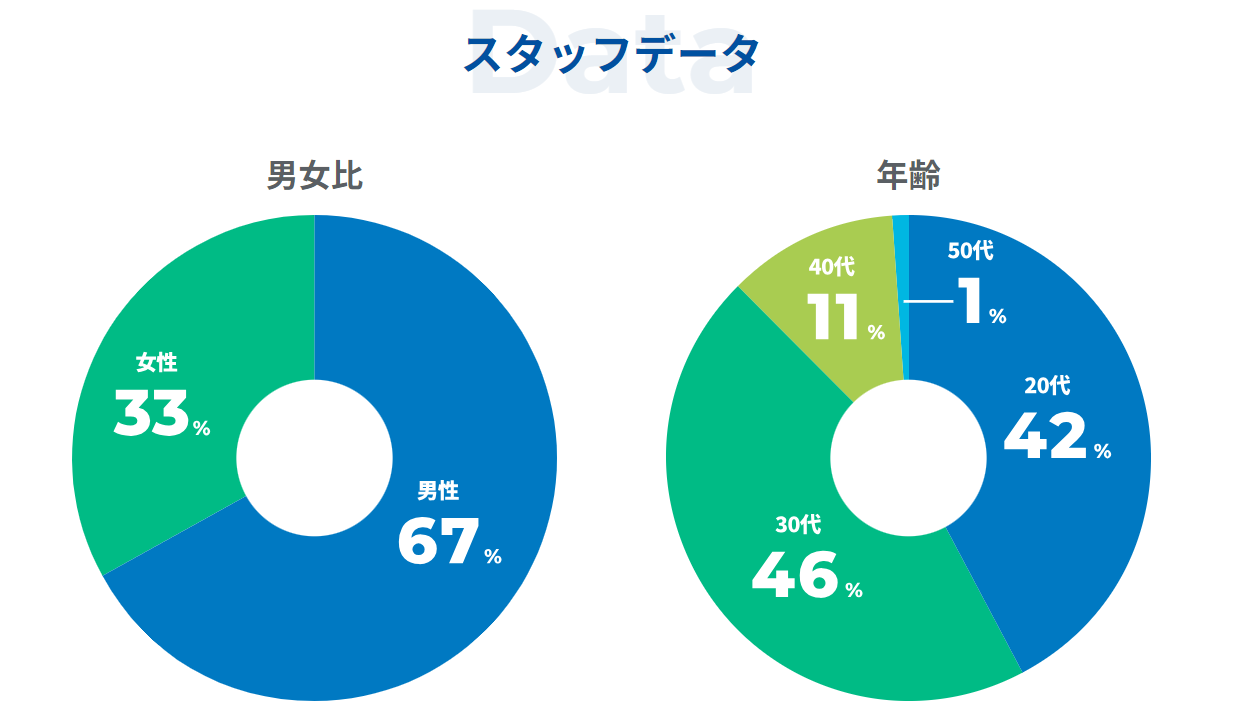 グラッドキューブは、30代前半くらいまでのメンバーが全体のおおよそ7割を占めています。