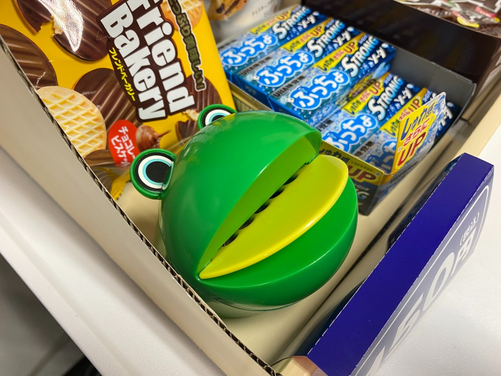 支払いはこのカエルさんの口の中にいれるようになっています。かわいい!