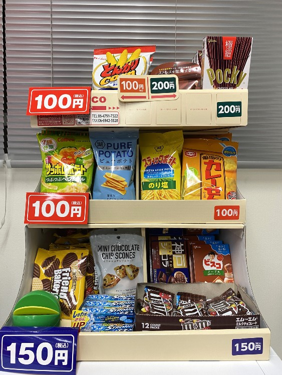 寒い中、コンビニまで行かなくても、社内でお菓子や飲み物が購入できるのはとても便利で、私自身もさっそく活用させていただいております!