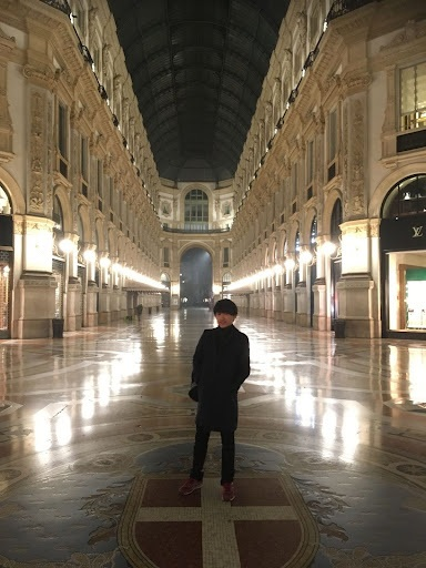 ■ 旅行先のミラノにて、観光名所“ガレリア”を散策する山崎さん