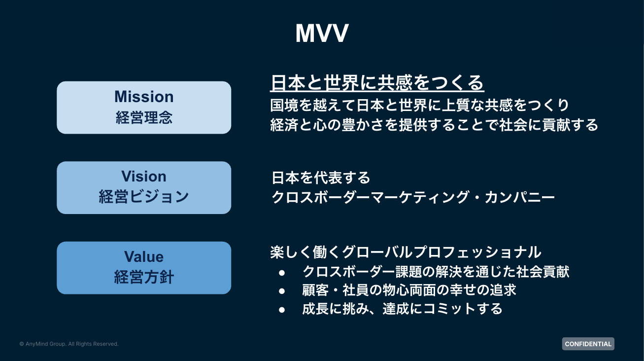 ビジョンとしては『日本を代表するクロスボーダーマーケティング・カンパニー』を掲げました。これは単なる業績目標ではなく、クロスボーダー領域において、社会に持続的な価値を提供し、必要とされる存在であり続けたいという決意表明です。