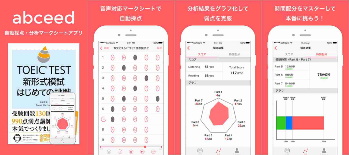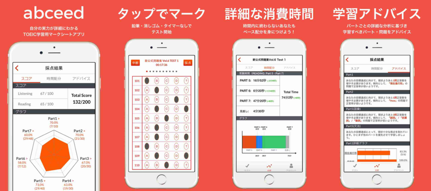また、自動採点機能だけでなく、教材の音声もアプリから聴けるようにできないか、ということで「音声機能」も加わります。こうして本の発売日である2016年5月28日に合わせてabceedを正式リリースすることができました。