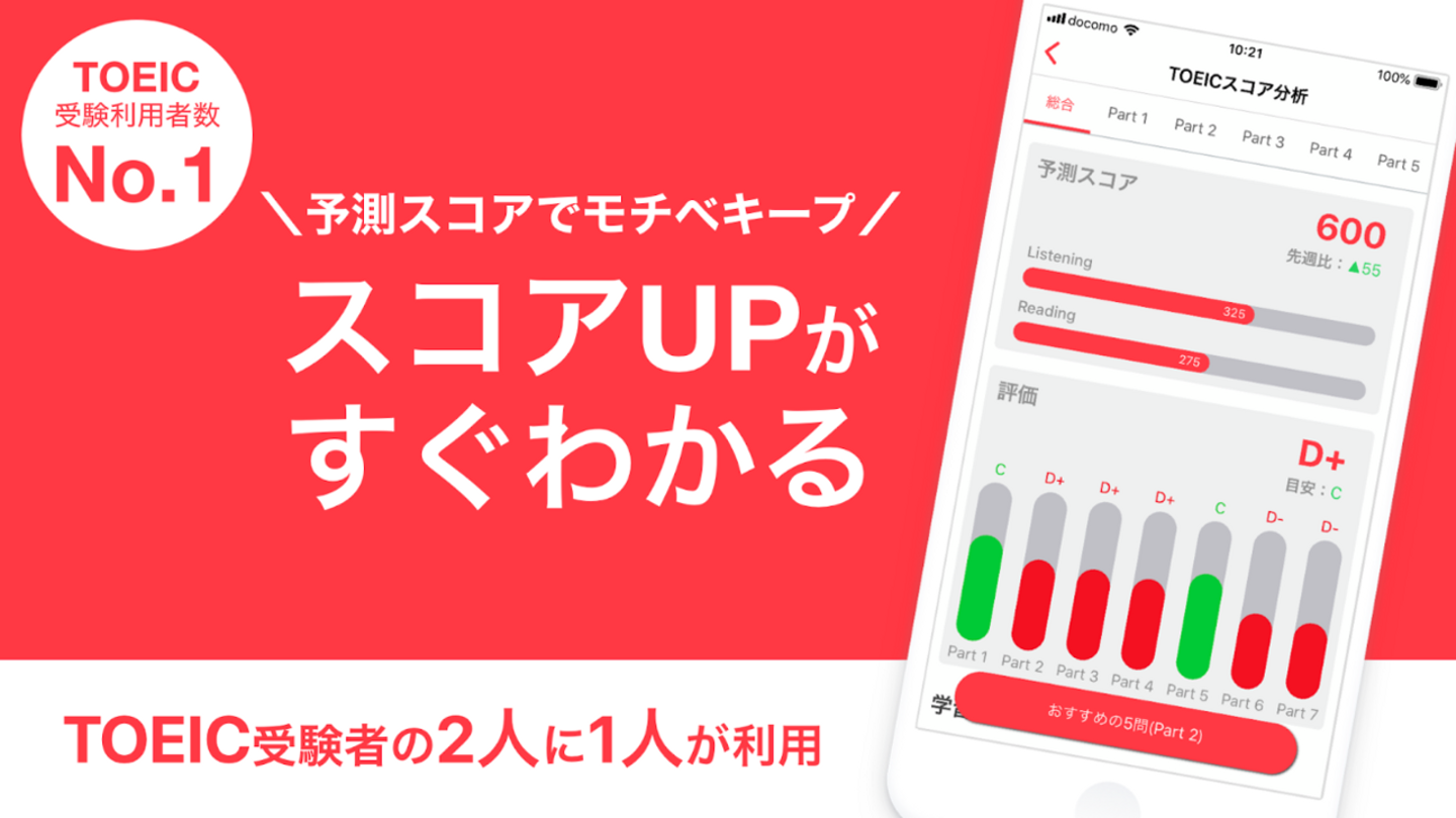 こうして2020年にはユーザー数100万人突破、AppStore/Google Playトップセールスランキング1位(教育アプリ)を達成できたわけですが、今ではもっと大きな構想も描いています。今後も引き続き「誰でもTOEIC 900点が取れるサービス」に向けて改善を続けていき、更にこの価値を他の分野(TOEFL/英検/大学受験 etc...)へ広げていくことで「誰でも英語ができるサービス」へと進化させていきますので、ぜひ楽しみにしていただきたいと思います。