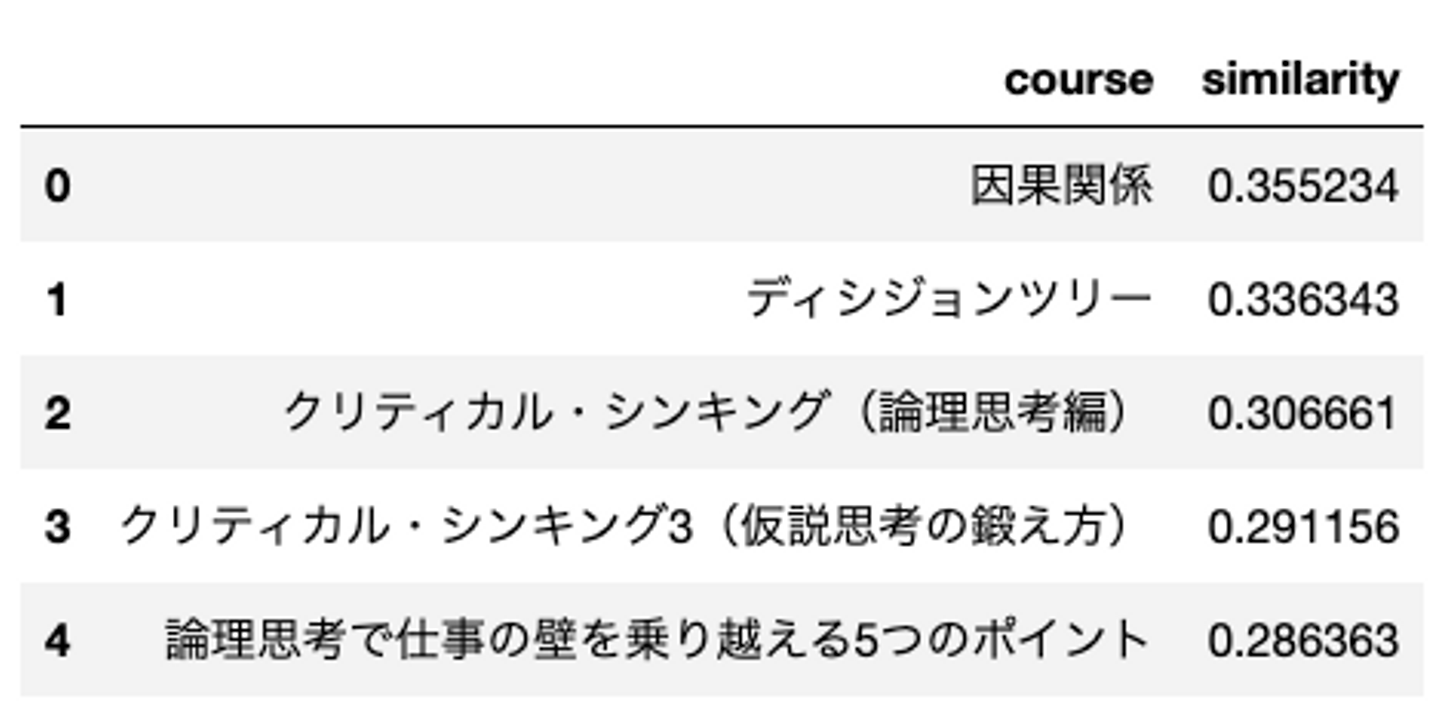 類似と判定されたコースを見てみると、確かにMECEの考え方を使っているコースが多く上手く行っているように見えます。