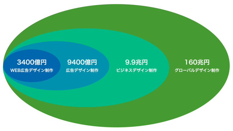 セールスや人材採用、PR、IR、アプリなどのデザインを含めた市場は約10兆円、世界で見れば160兆円の市場があります。