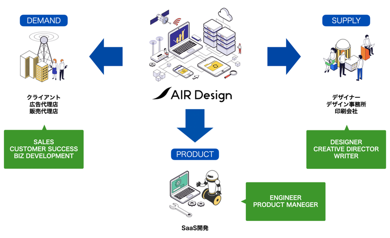 ③PRODUCTサイド:デザイン制作プロセスの改善・効率化を担う現行システム「AIR Process」の継続開発に加え、データに基づく分析・プランニングをSaaSとして提供する「AIR View」の新規開発を展開するため、エンジニアとプロダクトマネージャーの拡充が必要です。詳しくはCTOの細羽が書いた下記noteをご参照ください。