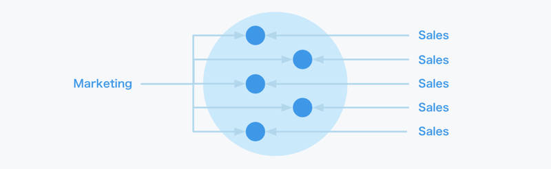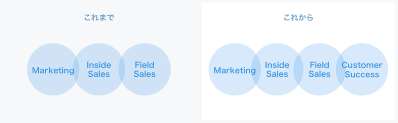 マーケ施策によるお客様とのタッチポイントが、お客様との最初の接点であり、営業の商談が初顔合わせ、このタイミングから、いかにお客様を成功に導けるか、伴走できるか、を考えた仕組みを実践していきます。