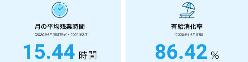 ※残業時間や有給消化率の見える化(全従業員の労働時間を社内に毎日公開することで、お互いの状況を察してフォローしあえるようにしています)