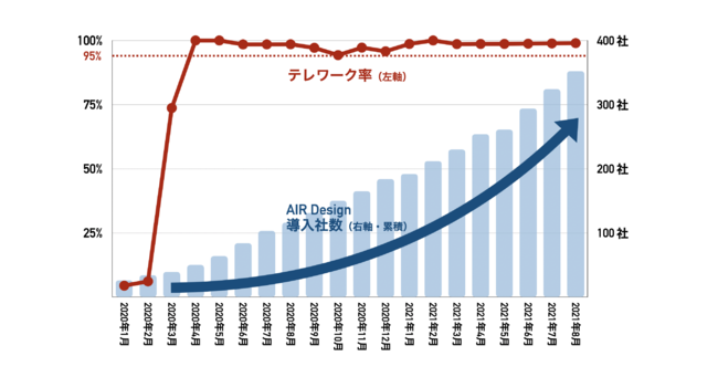 また、テレワークでの働き方を推進し、2020年4月〜2021年8月でのテレワーク実施率は平均98.3%に達しています。