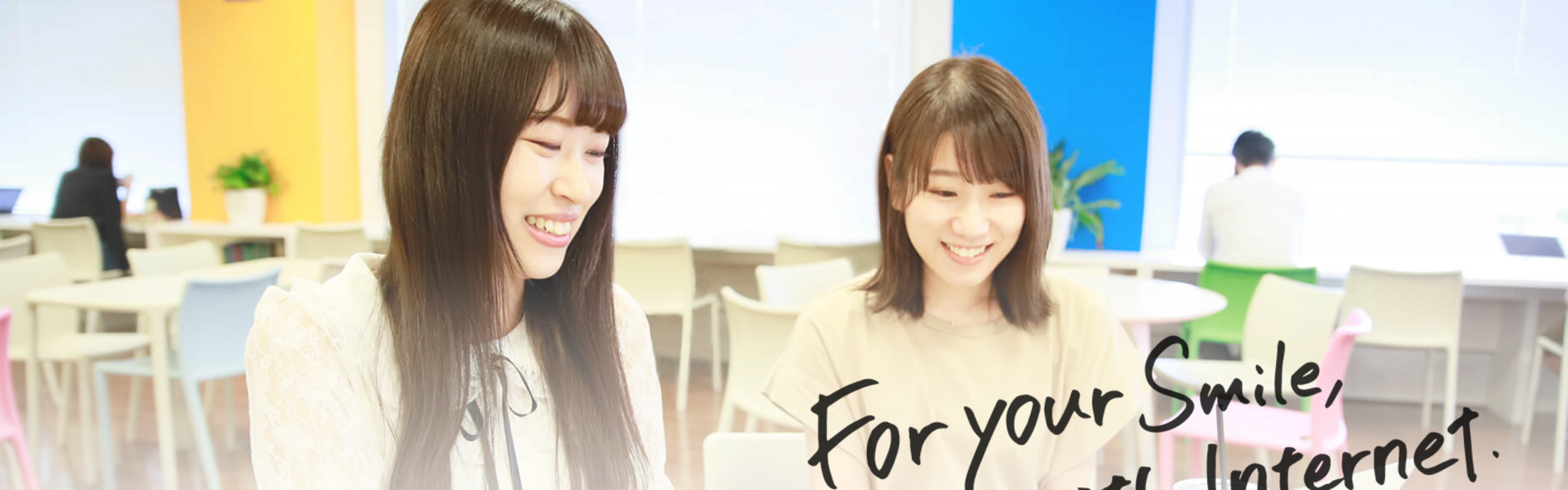 「For your Smile, with Internet.」 「you」は、ユーザー・パートナー(社員)・株主・取引先、関わるすべての方。 「smile」は、笑顔・ほほえみ・幸福・満足・ここちよさ。 関わるすべての方々に、インターネットを通じて「smile」を浮かべてもらいたい、こぼしてもらいたい。そんな想いが、我々GMOメディアの創設の志であり、メンバーの想いです。