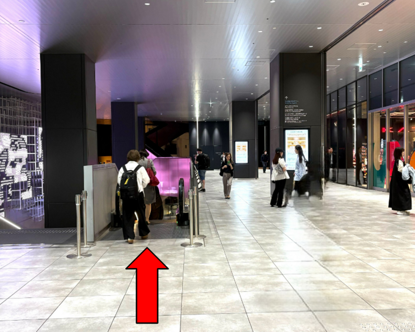 駅からセルリアンタワーに到着された場合は、エスカレーターを上がり、向かって左側のオフィスエントランスをくぐり、正面にある受付カウンターまでお越しいただきます。
