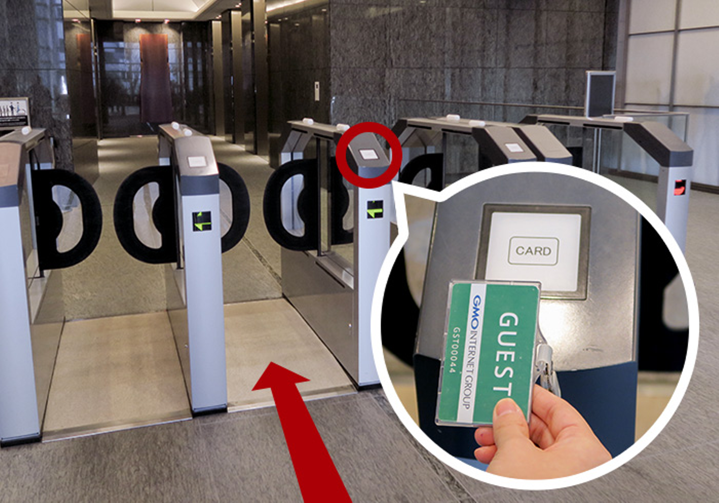 受付が完了したら、ゲストカードを使ってフラッパーゲートを通過し、エレベーターで16階に移動していただきます。
