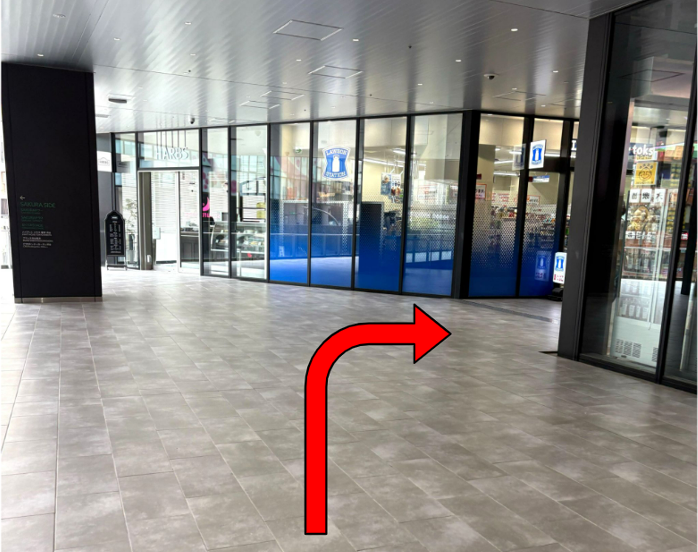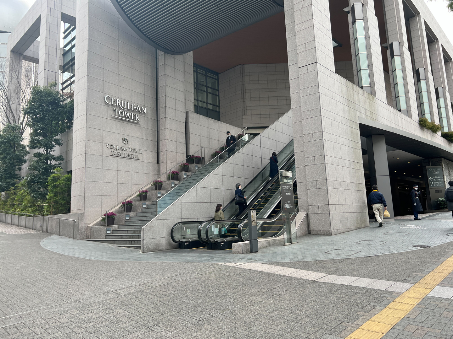 階段を降りていただき、すこし歩くと斜め左側にセルリアンタワーがございます!