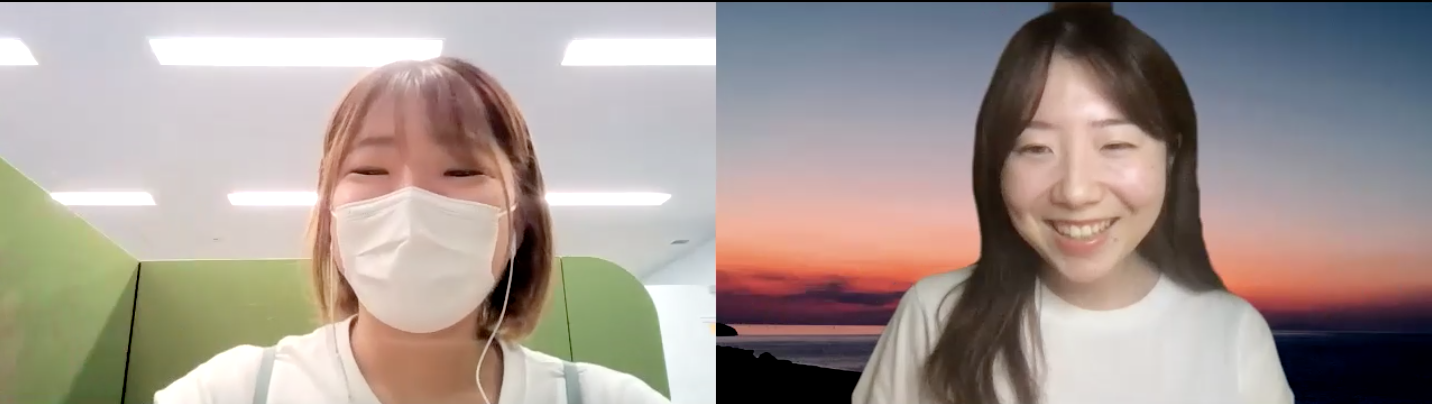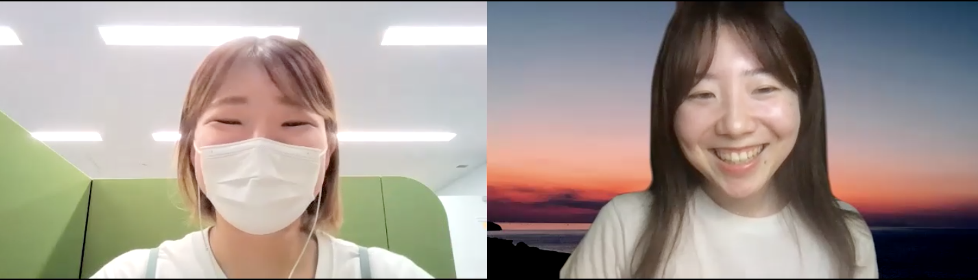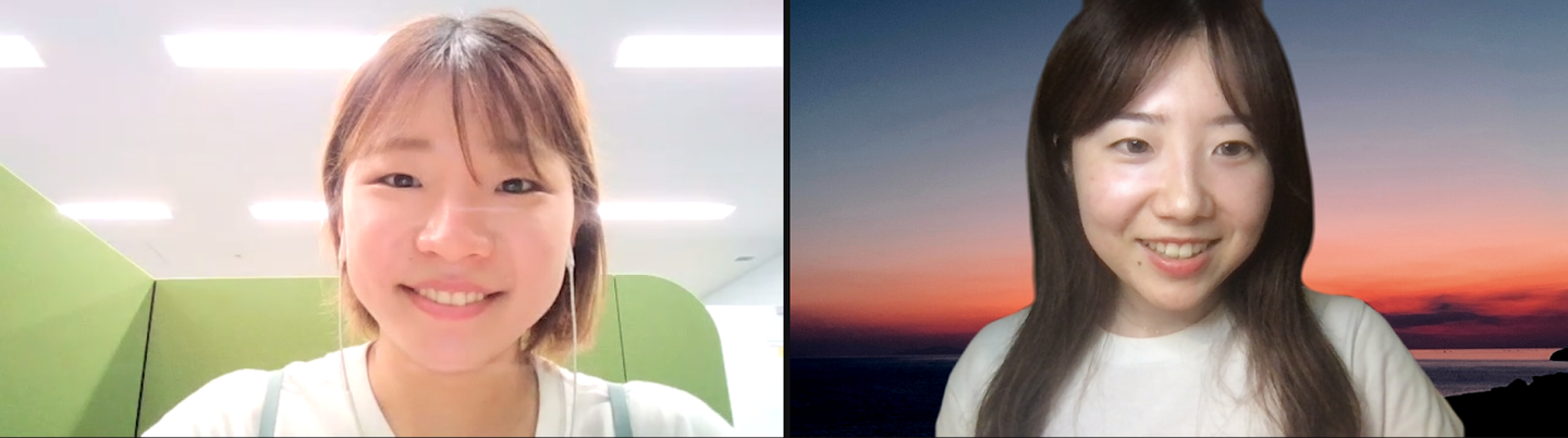 益山(写真右):GMOリサーチ株式会社システム部所属。技術広報2年目。主な仕事内容は、開発ブログの運営やSNSの更新、インタビュー記事の執筆など。鹿児島県霧島市出身。Zoomの背景はどこかで拾ってきた夕焼けのフリー素材。