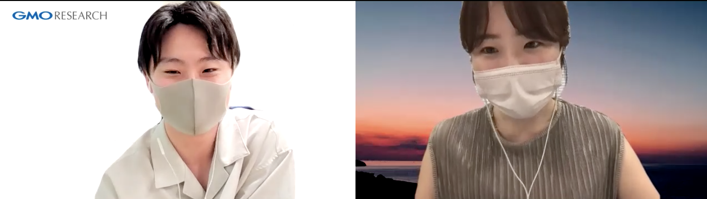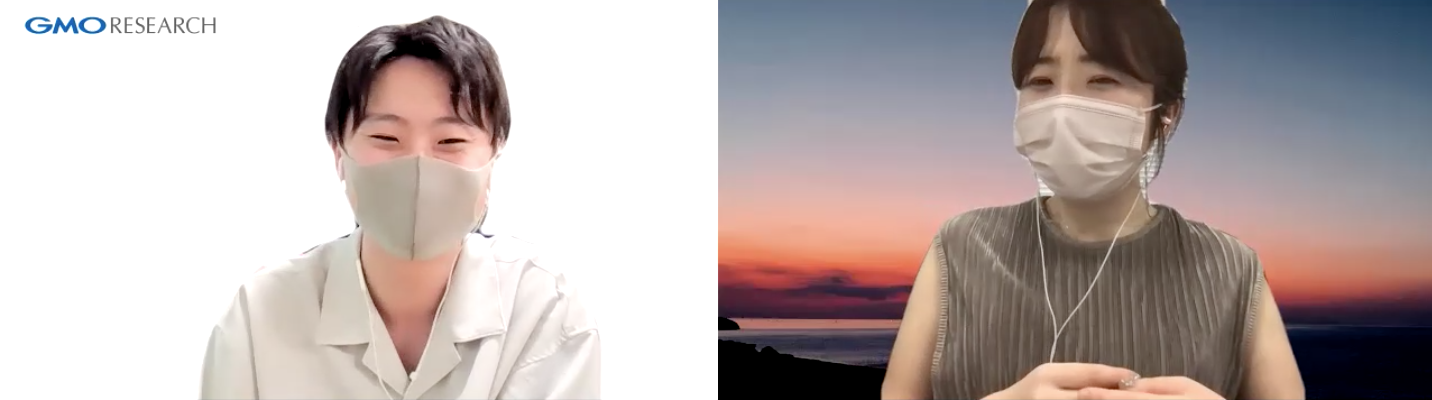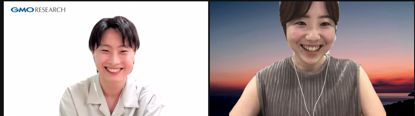 森下(写真左):GMOリサーチ株式会社コンサルティング営業部MR課所属。新卒1年目。大阪生まれ、千葉育ち。体はアニメでできている、血潮はゲーム、心は漫画。けれど、三度の飯が一番好き。