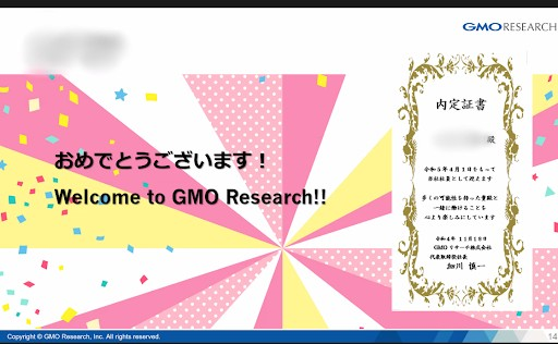 GMOリサーチでは11月18日、23年新卒者の内定式をZOOMで開催いたしました!