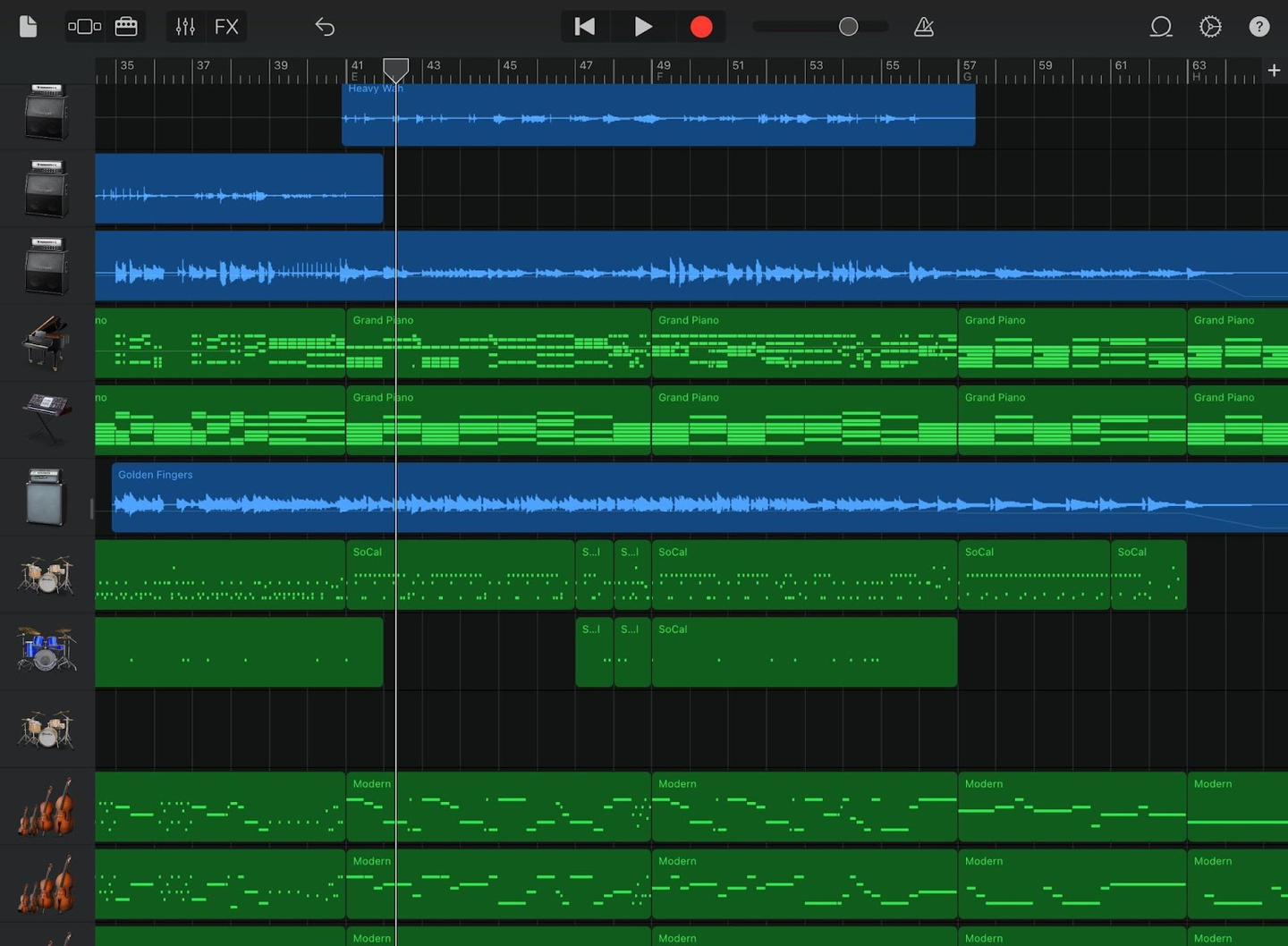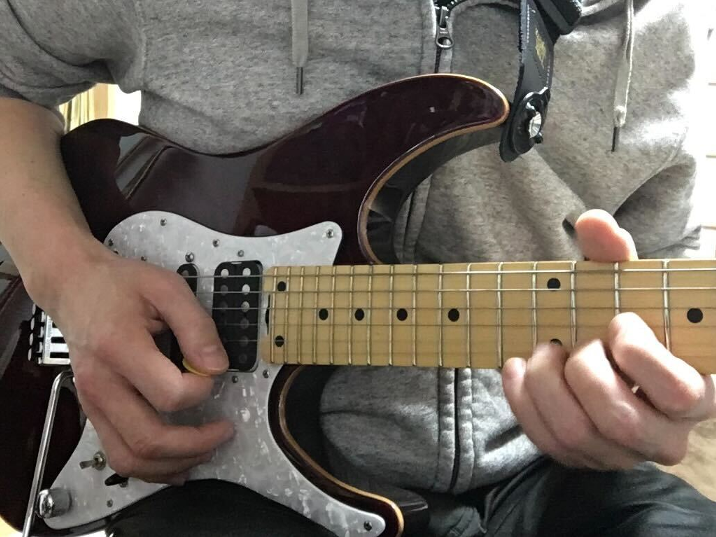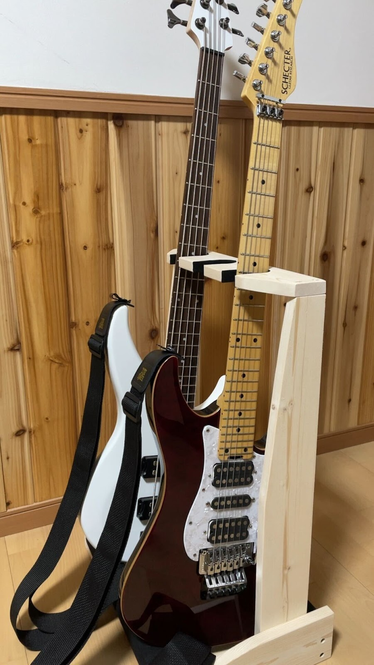 (今回の楽曲で使用したギター(手前)とベース。ベースはこれを機に購入されたそう。また、ギター、ベースは自分で演奏し、その他の音源や編集なども含め全てiPad一台で作られたそうです!)