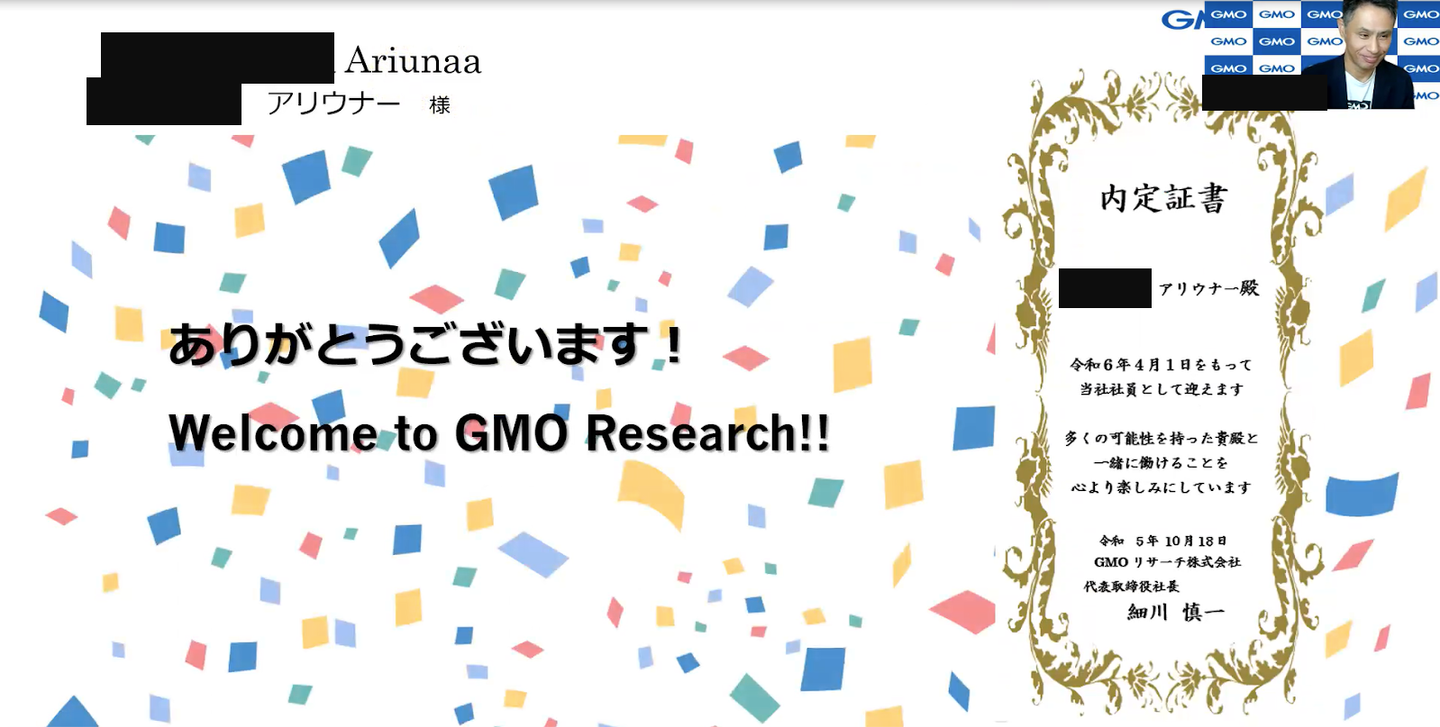 GMOリサーチでは先月、24年新卒者の内定式をZOOMで開催いたしました!