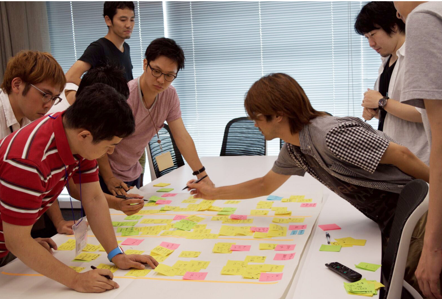 グッドパッチのチームビルディングを語る上で欠かせないのが全社員が毎日集まる朝礼と終礼。毎朝10時から全社員が持ち回りで5分間のライトニングトークをします。自分が好きな話をしてもよし、最近考えていることを共有するもよし、自己紹介をしてもよしと、とてもカジュアルなものです。その後はシャッフルグループで英語ネイティブメンバーが教えてくれる英会話の時間。そして、定時の19時には全員集まりお疲れ様を言い合う終礼を長い間、毎日続けてきました。 そんな社内外からも好評なこの習慣、実は2017年2月現在は一時停止しています。新しい組織に生まれ変わるために長年続けた習慣をストップし現在の組織に適したものに改善していこうと、代表の土屋が自ら決断しました。