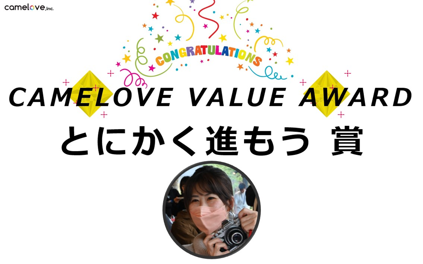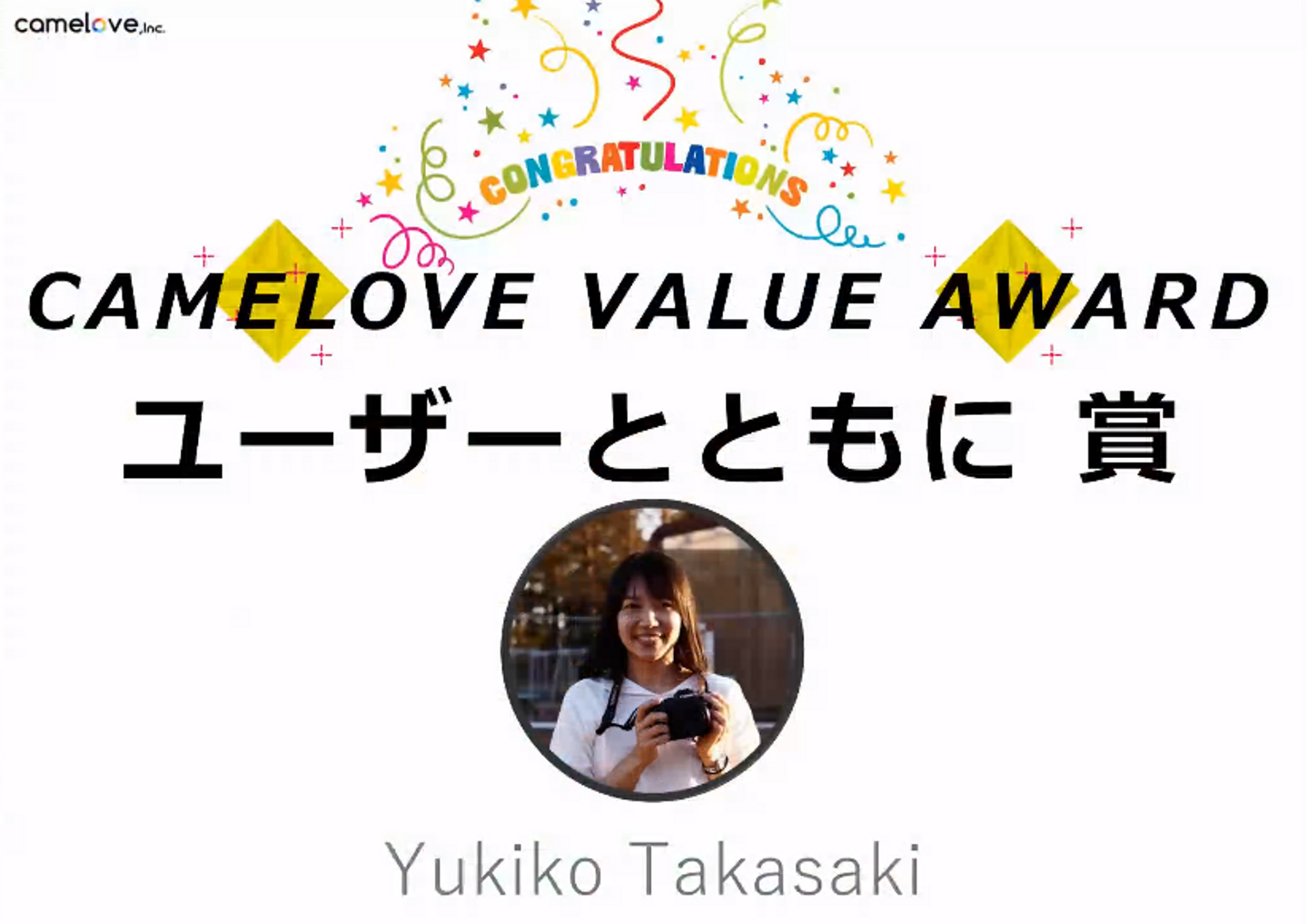 投票が分散し、受賞者がいなかった賞(大きく描こう賞)もありましたが、企業の方向性を再認識しながら、VALUEの体現者にフォーカスをすることができたカメラブアワード授賞式。受賞を通じてメンバー各々の目標設定もより明確になったと思います。