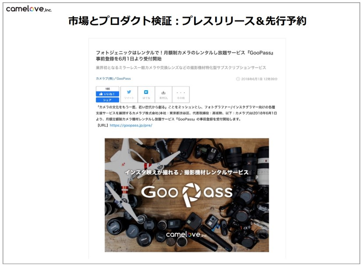 カメラを定額で借り換え放題できる「GooPass(現GOOPASS)」は、先行予約で2000人の方が登録をしてくれました。思った以上の予約数に心が躍りました。これで多くの方に機材体験を提供できると、
