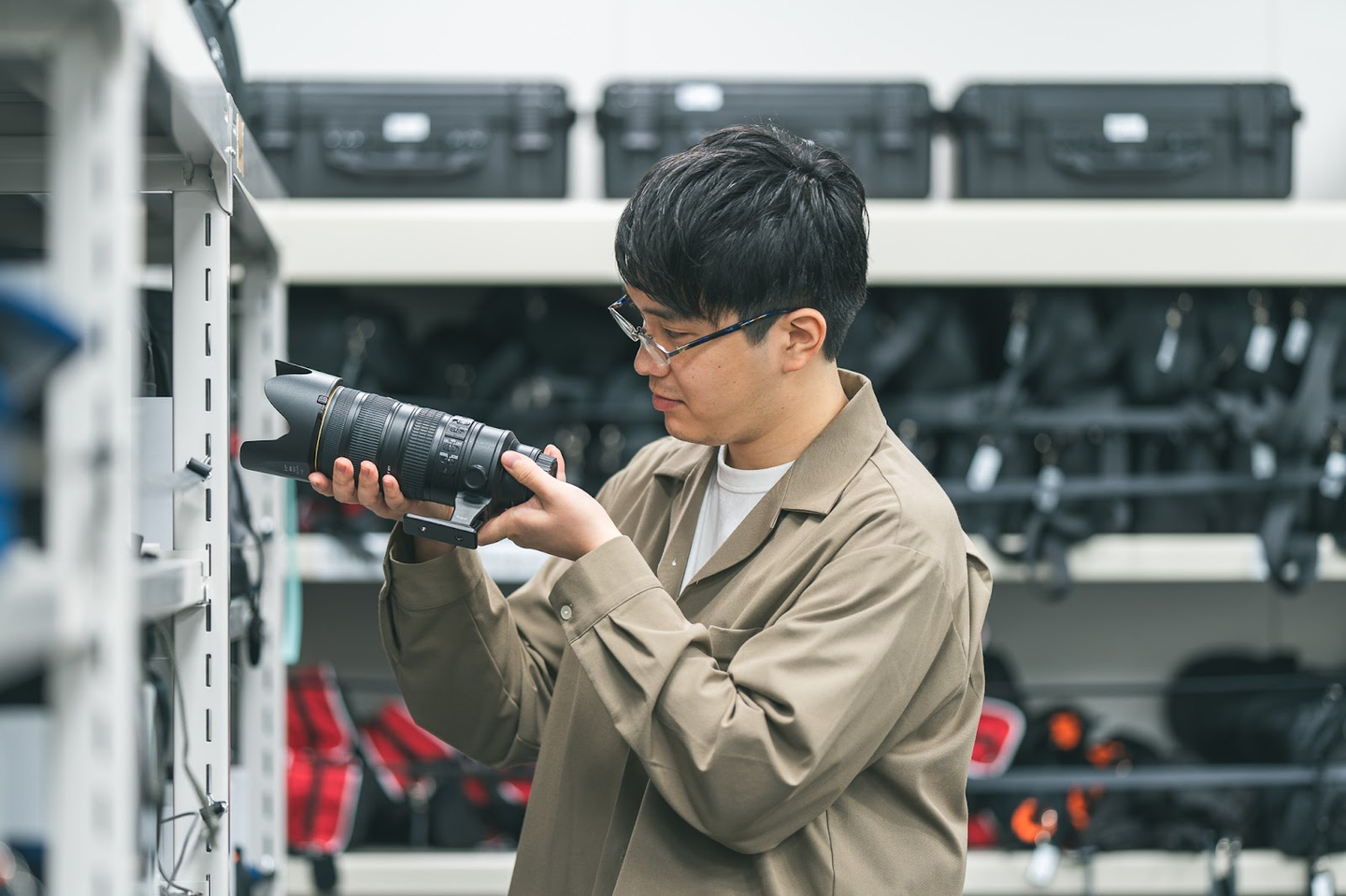 機材管理の仕事は地道な作業も多いのですが、私は高校生の頃からカメラが好きなので幅広い商品に直接触れられるのが面白いです。マニアックな機材もあるので、動作確認の際、レンズやカメラの特徴に心の中でツッコミを入れながらメンテナンスをしています。