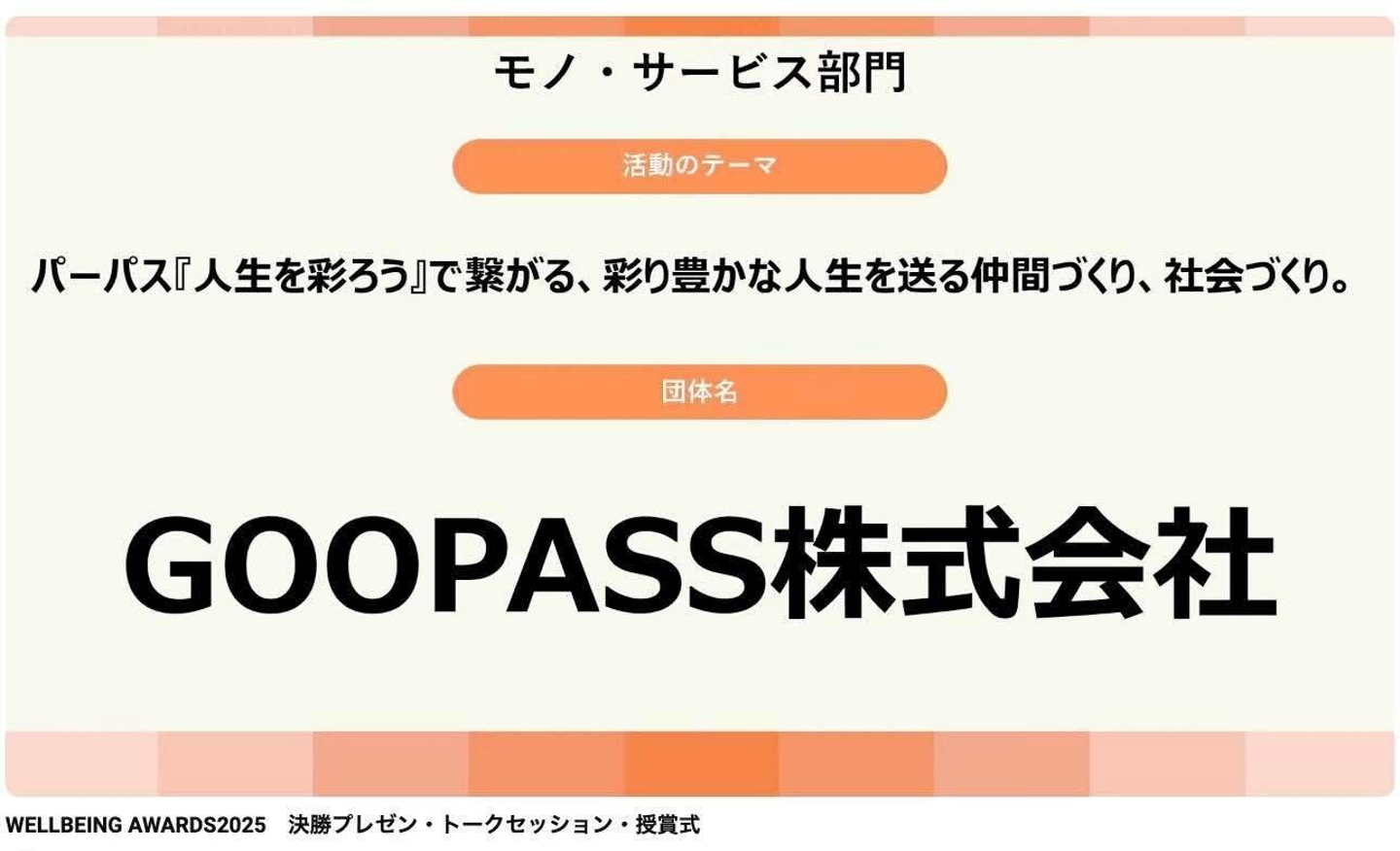 こんにちは!GOOPASS株式会社の松本です。この度、当社は、『WELLBEING AWARDS 2025』において、ファイナリストに選出いただきました!